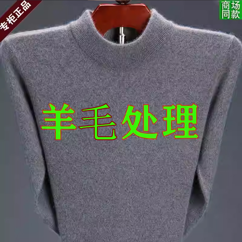 鄂尔多市秋冬季加厚半高领100%羊毛衫男士圆领羊毛衫中年毛衣男潮