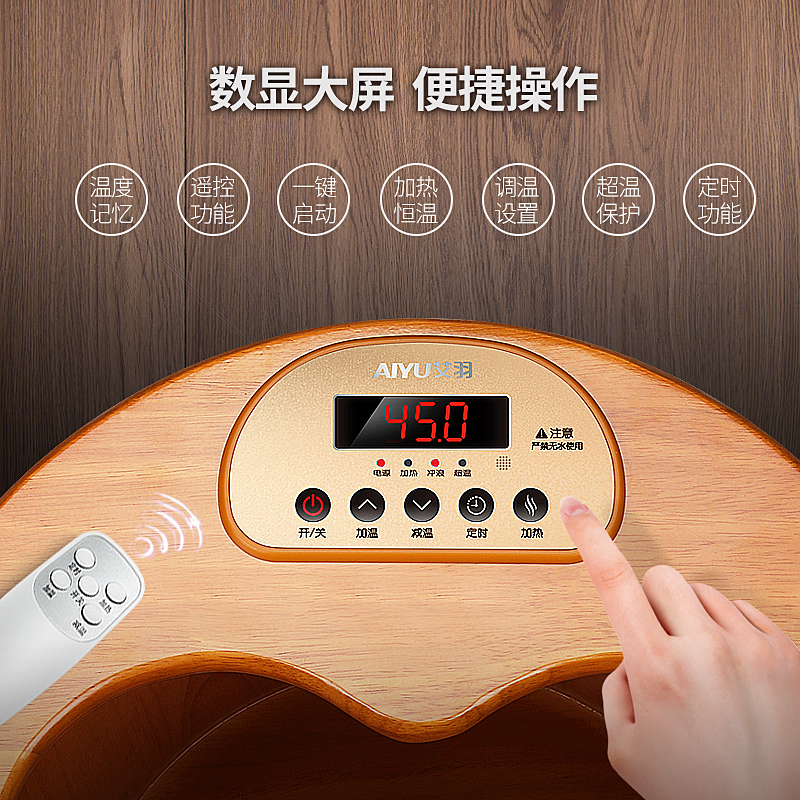 艾羽泡脚桶洗脚盆电动按摩家用足浴盆全自动加热恒温足疗神器木桶