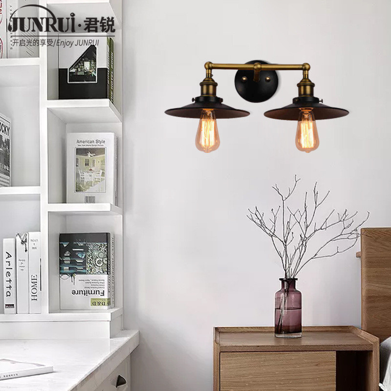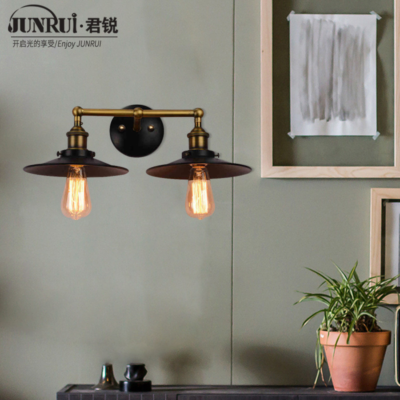 美式乡村工业复古壁灯双头黑伞壁灯北欧美式工业风创意铁艺壁灯