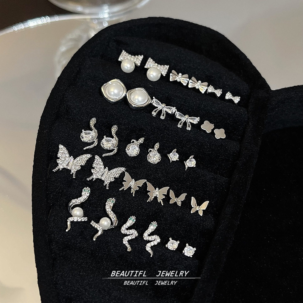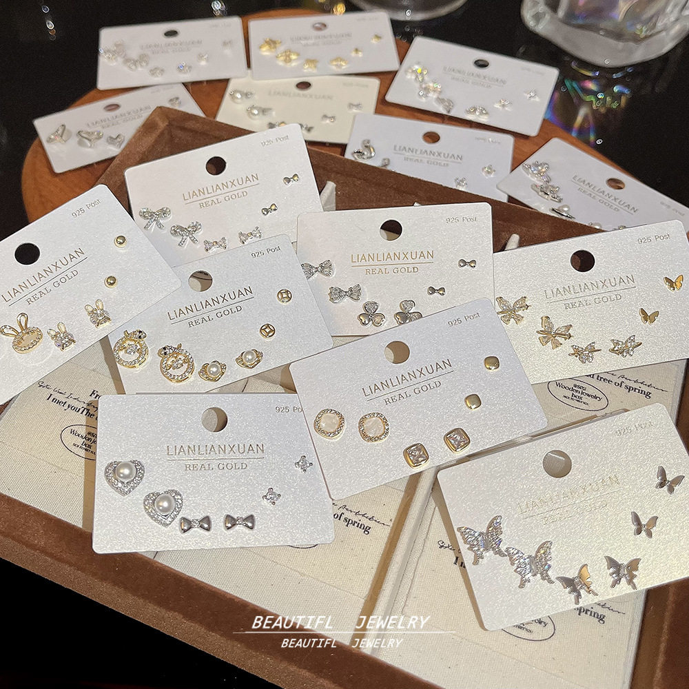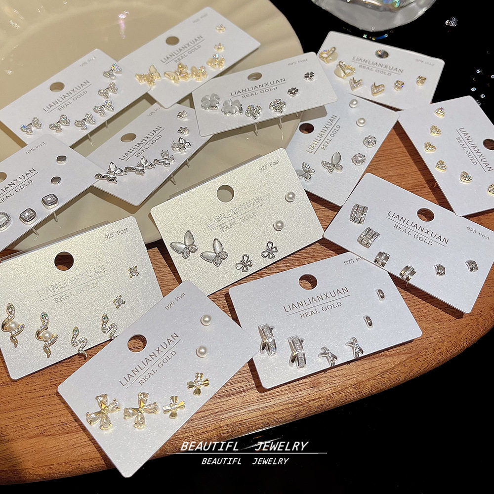 18K金精致锆石一卡三对耳钉925银