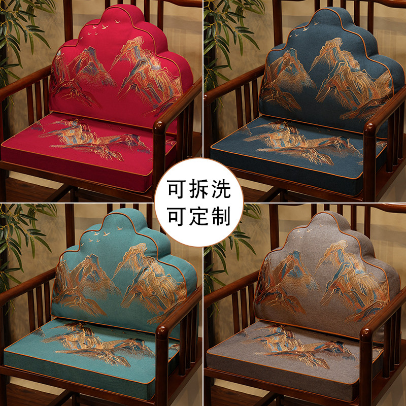 中式圈椅坐垫红木椅子座垫云朵枕一体茶椅餐椅垫实木沙发坐垫靠背