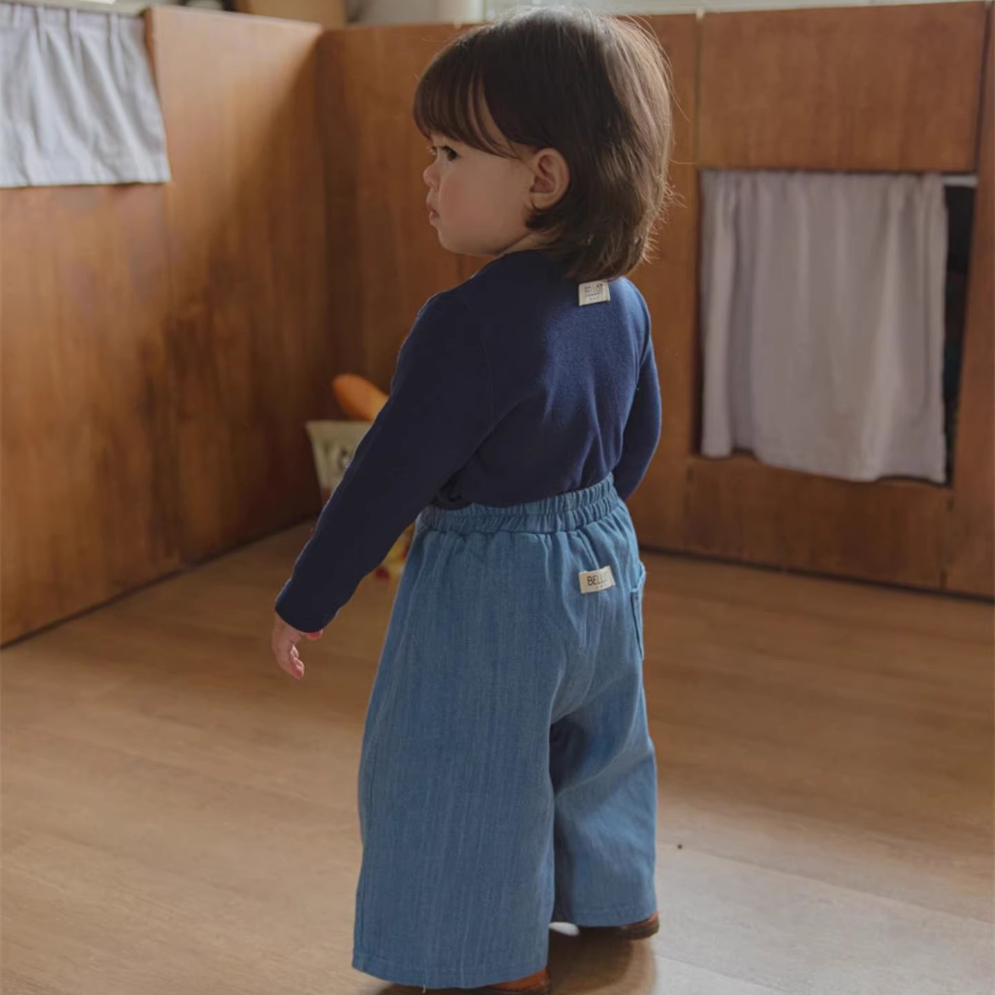 婴儿衣服秋季新款套装男女宝宝韩版纯色长袖打底衫阔腿牛仔裤套装