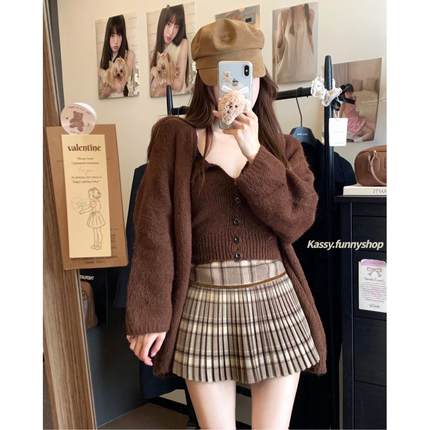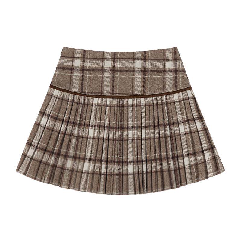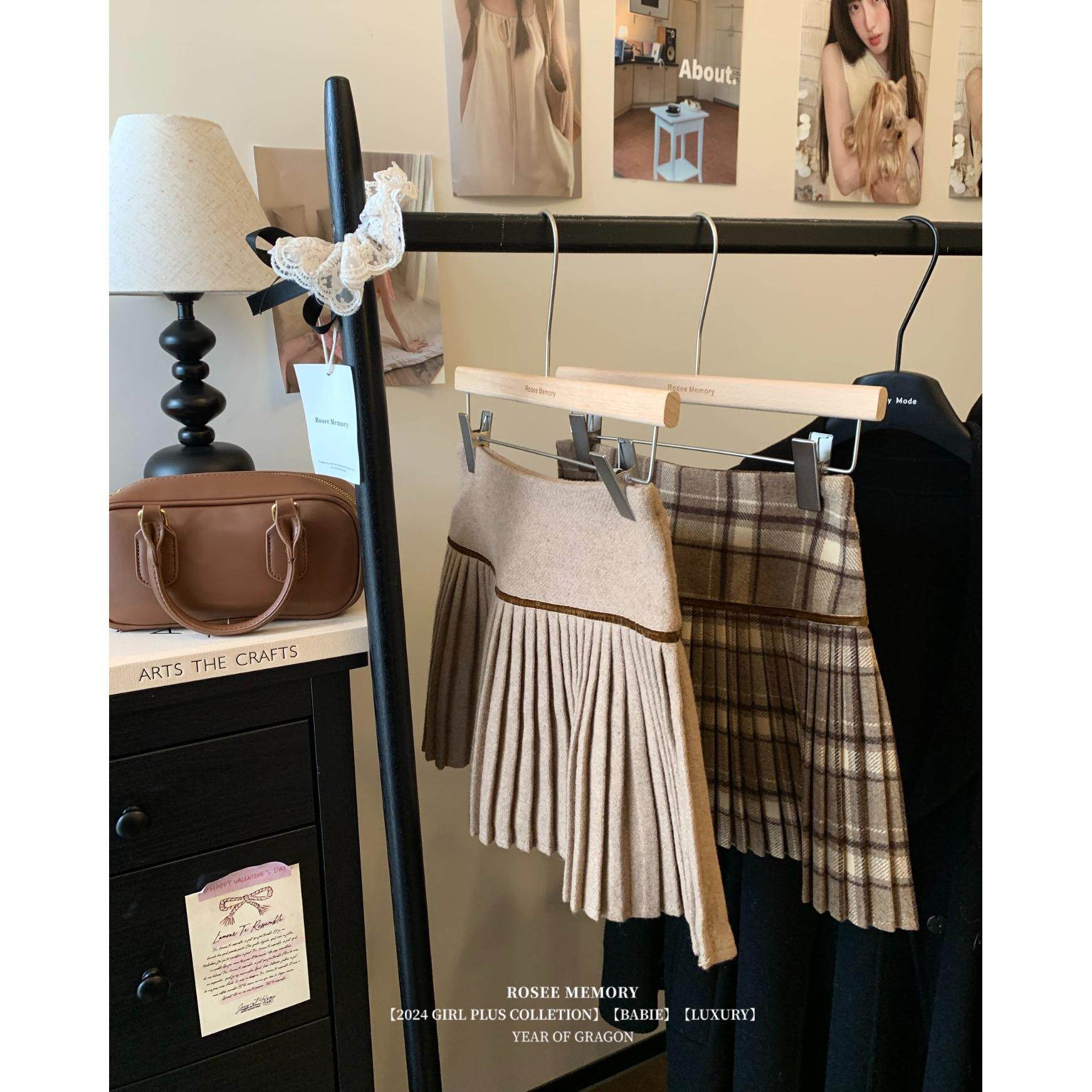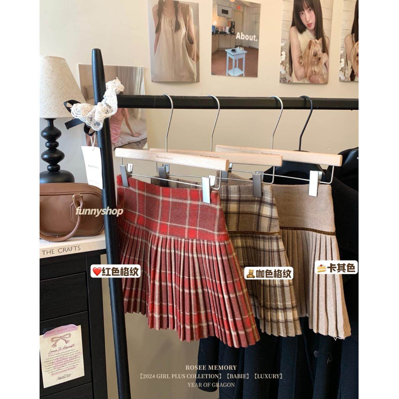 复古红色格子毛呢百褶裙时尚百搭半身裙女春季高腰a字防走光短裙
