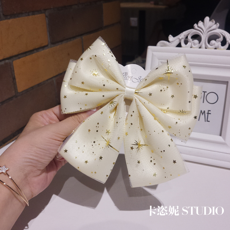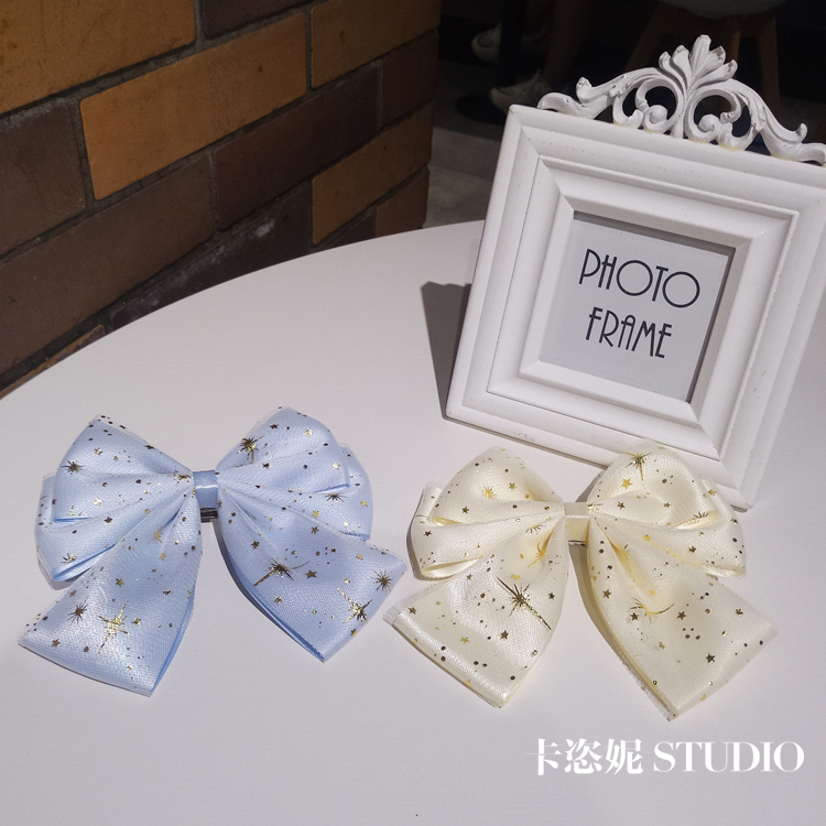 纯手工奶白蝴蝶结发夹洛丽塔lolita头饰复古马尾顶夹发卡星星发饰