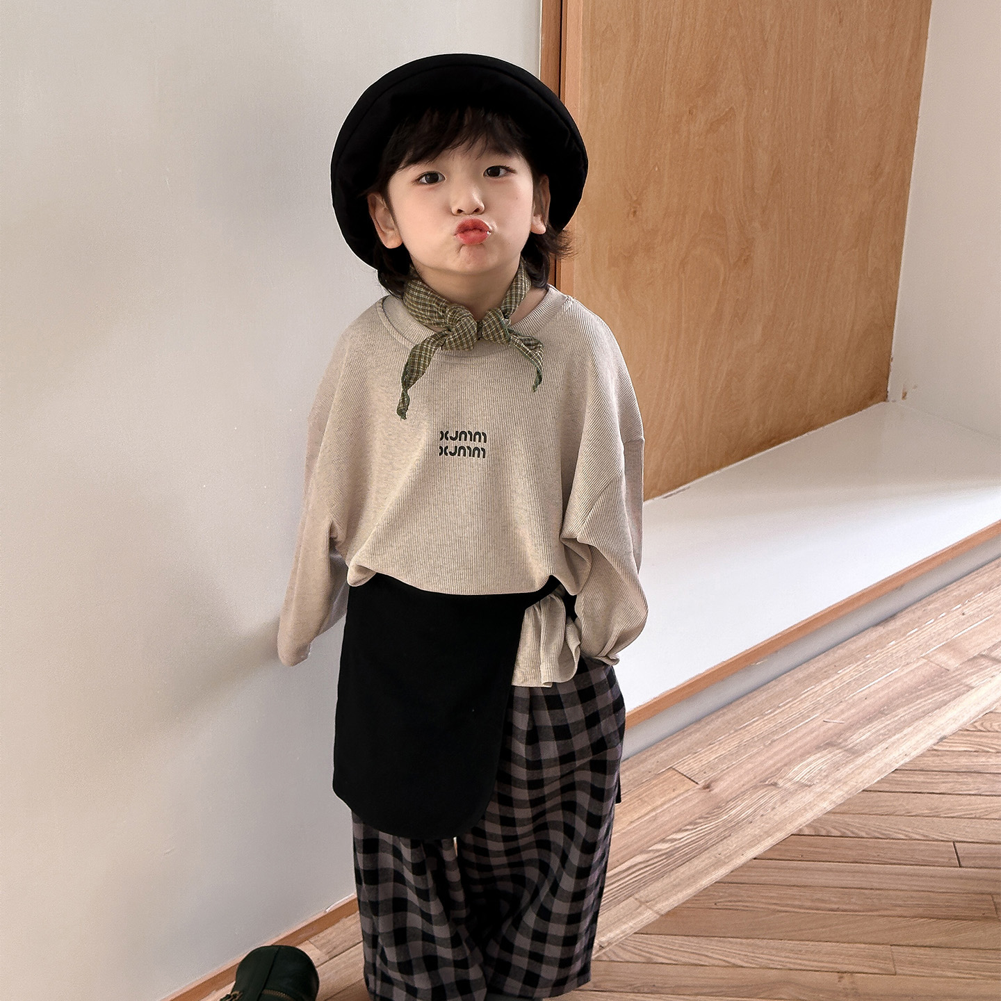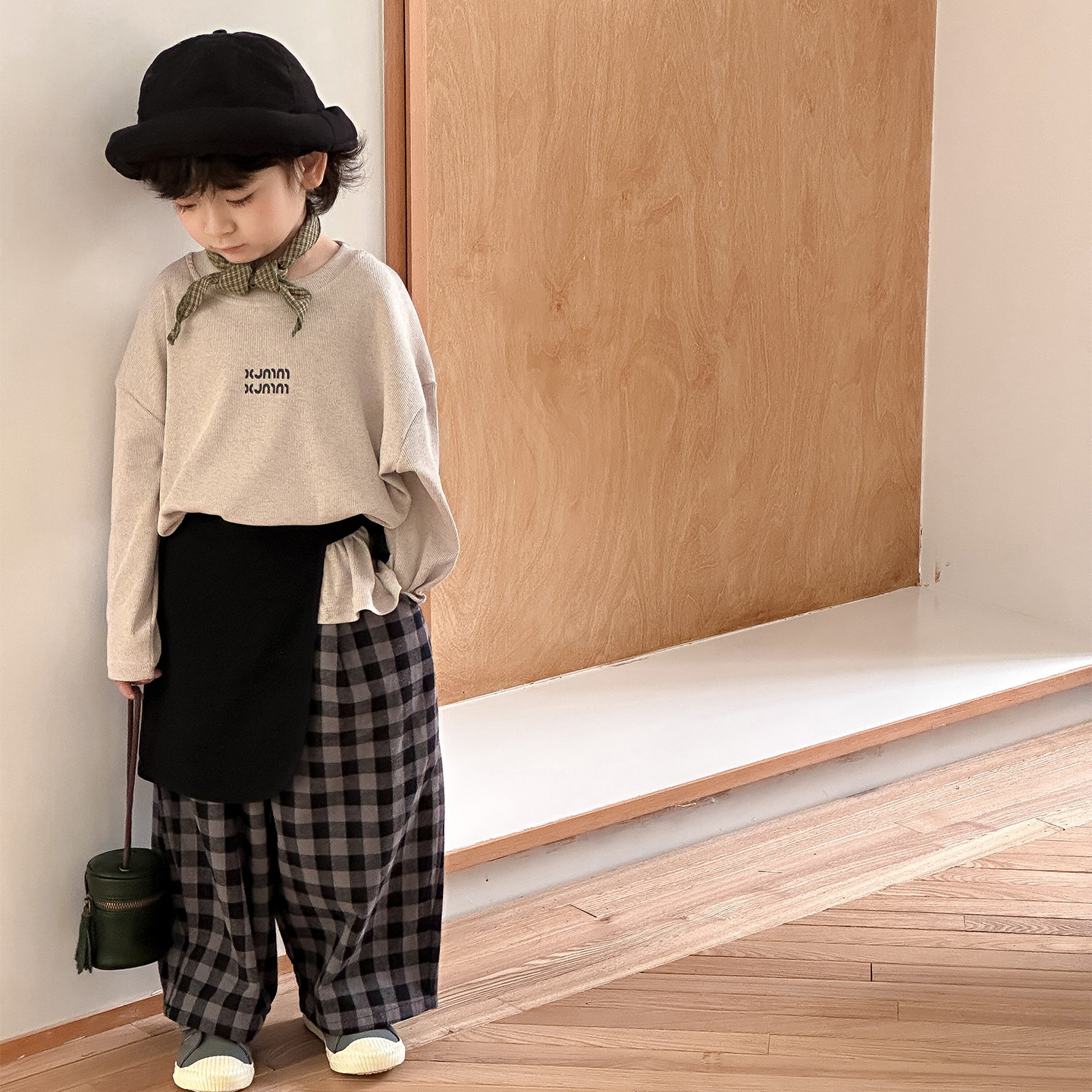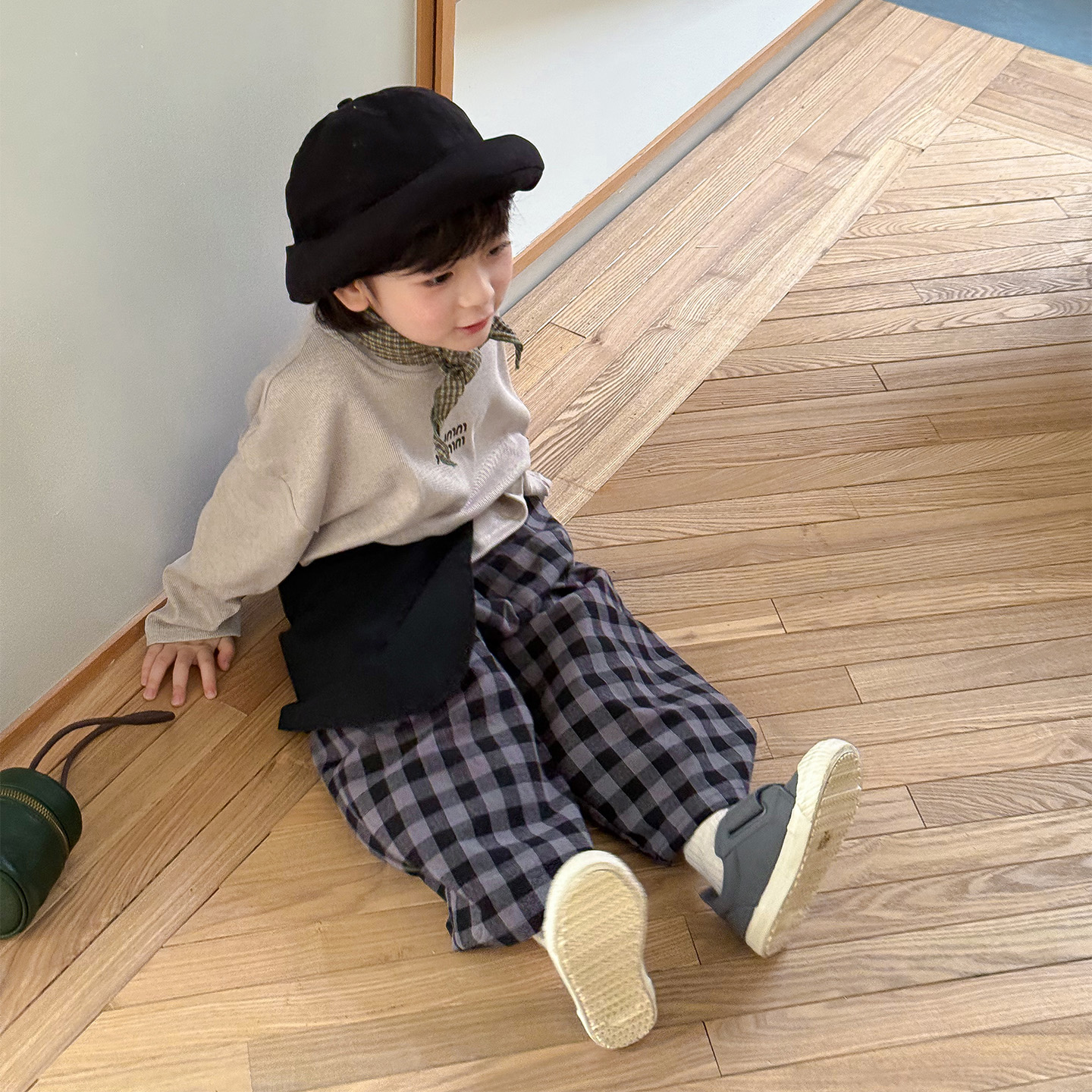 【小童】虾酱麻麻男童纯棉裤子春秋装2025新款宝宝格子儿童休闲裤