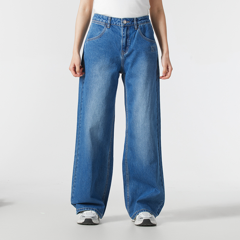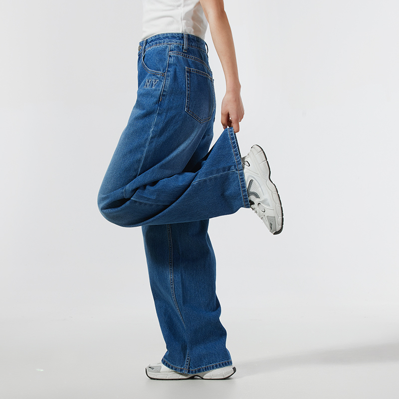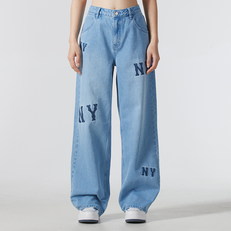 新款正品MLB直筒宽松时尚街头百搭女运动休闲牛仔长裤FDPG