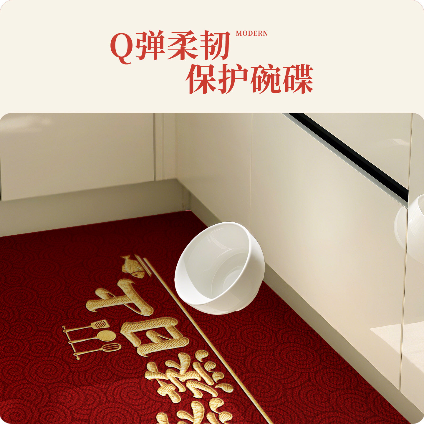 蒸蒸日上红色厨房地垫防滑垫喜庆硅藻泥家用脚垫耐磨防霉吸水地毯