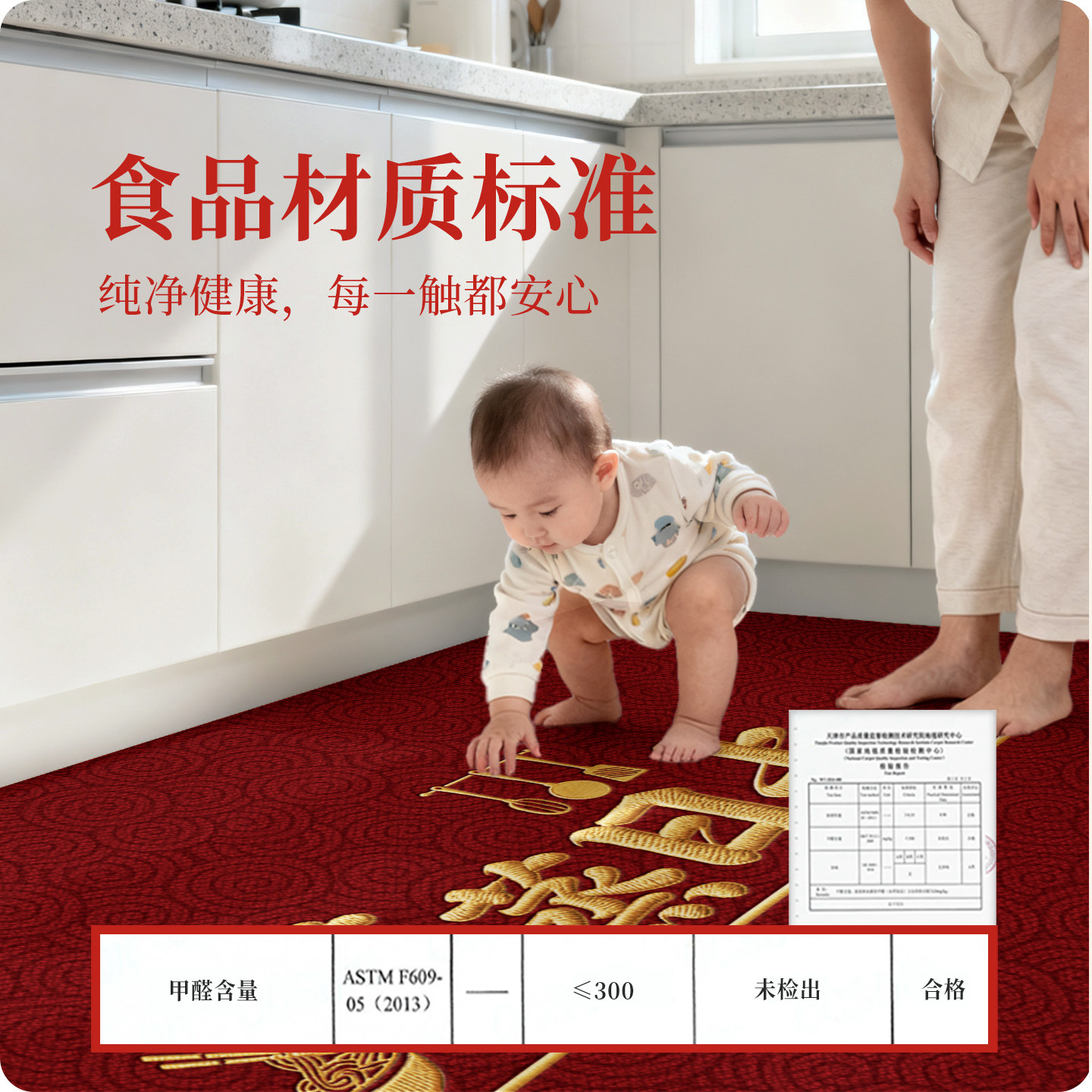 蒸蒸日上红色厨房地垫防滑垫