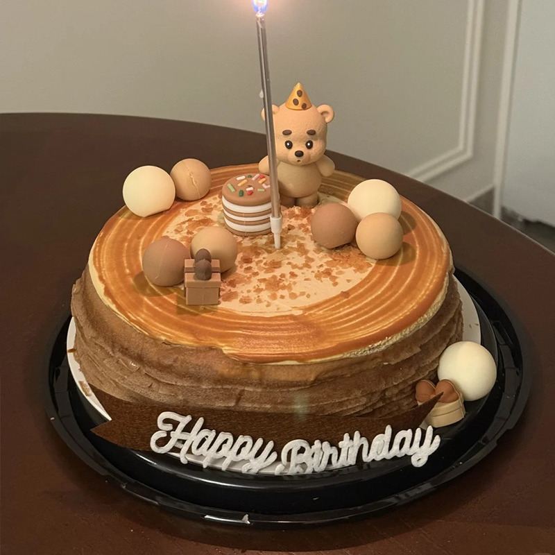 山姆蛋糕diy装饰千层吹蜡烛深色小熊蛋糕摆件儿童生日自制插件l