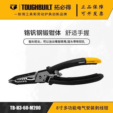 TOUGHBUILT拓必得尖嘴电缆8寸多功能电工安装剥线钳TB-H3-60-M200