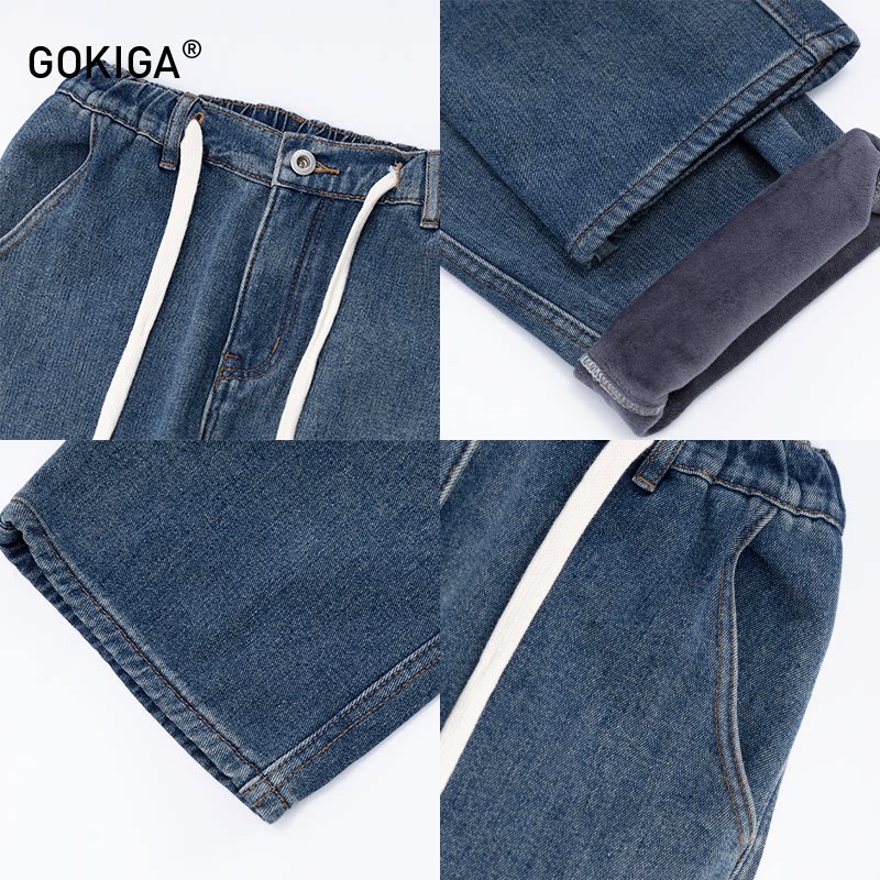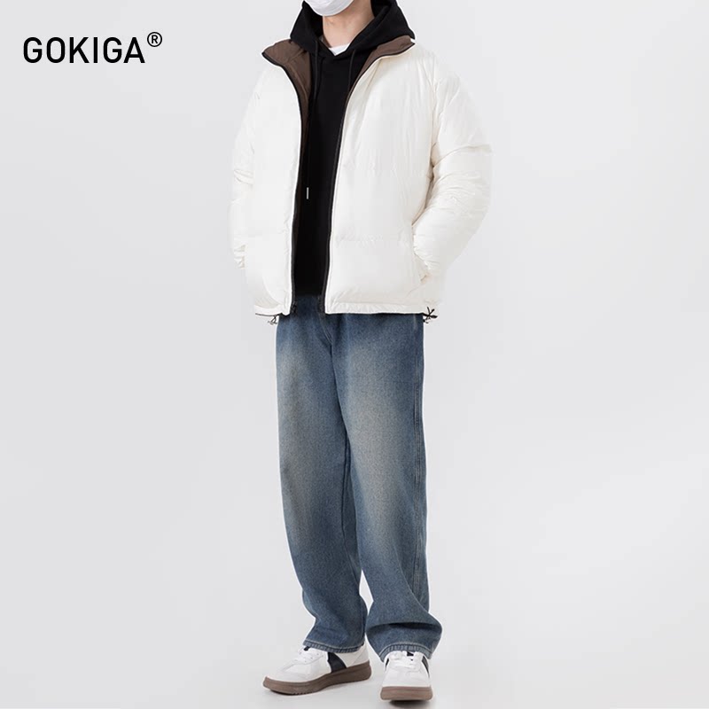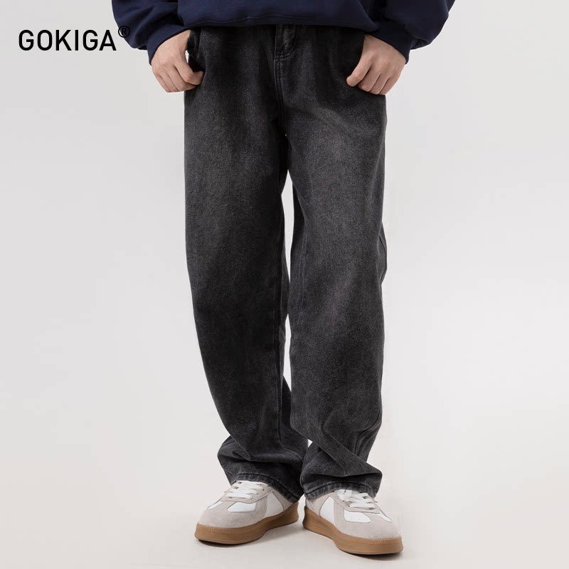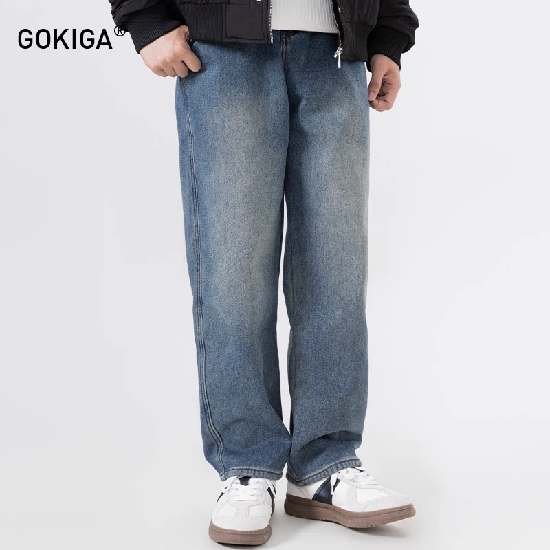 GOKIGA美式复古水洗直筒牛仔裤男