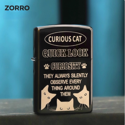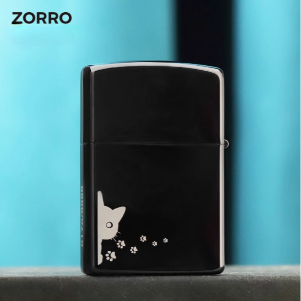zorro佐罗高颜值黑冰猫咪煤油打火机送男友节日礼物砂轮防风高级