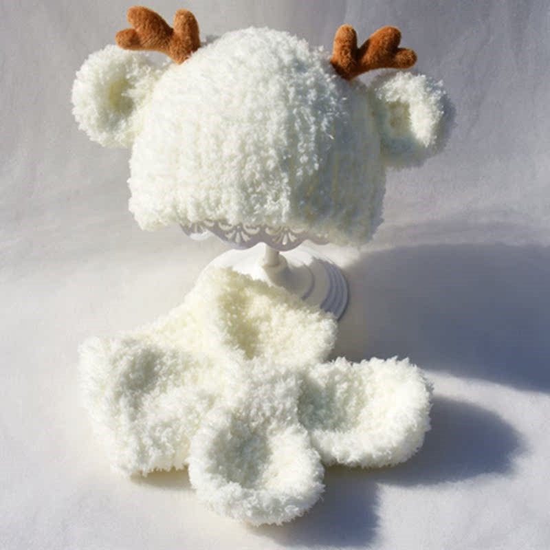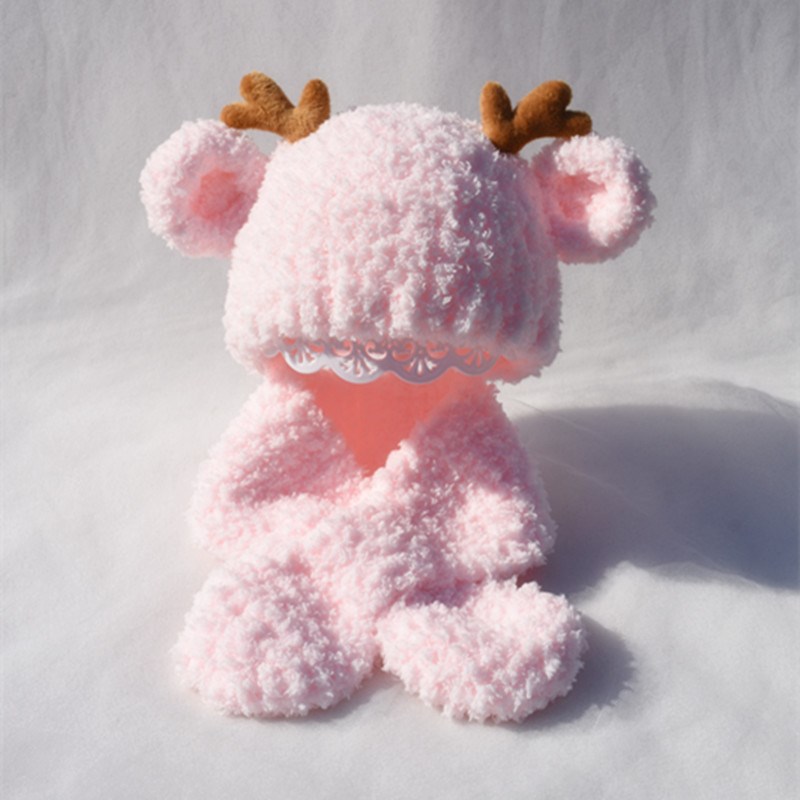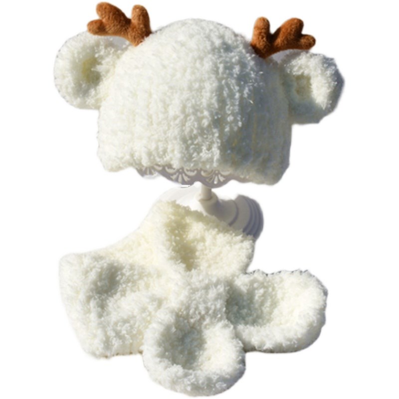男女宝宝鹿角帽子围脖套装新生婴儿胎帽超萌可爱手工编织毛线帽冬