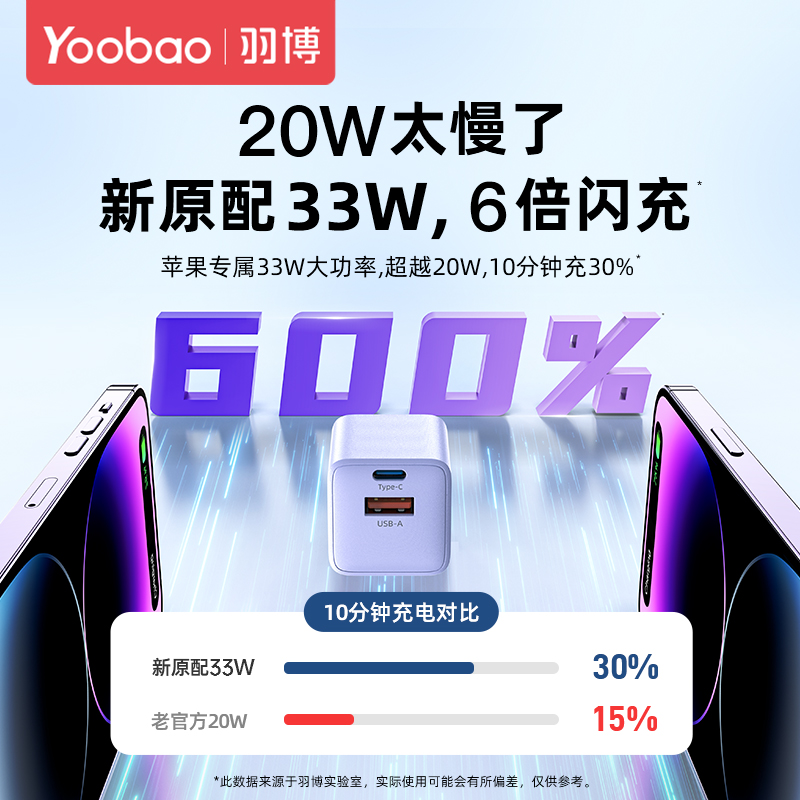 羽博33W快充充电器适用苹果8-15
