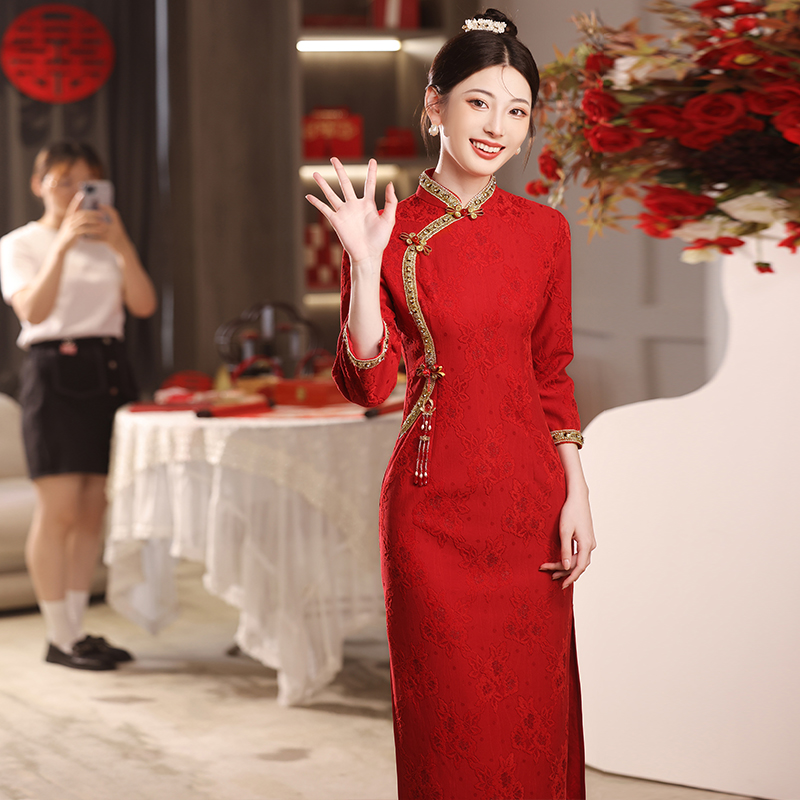 红色旗袍敬酒服2025年新款新娘结婚年轻款中袖订婚连衣裙女回门服