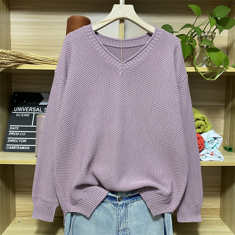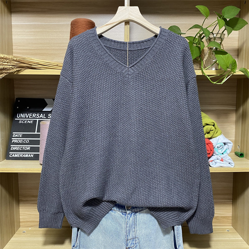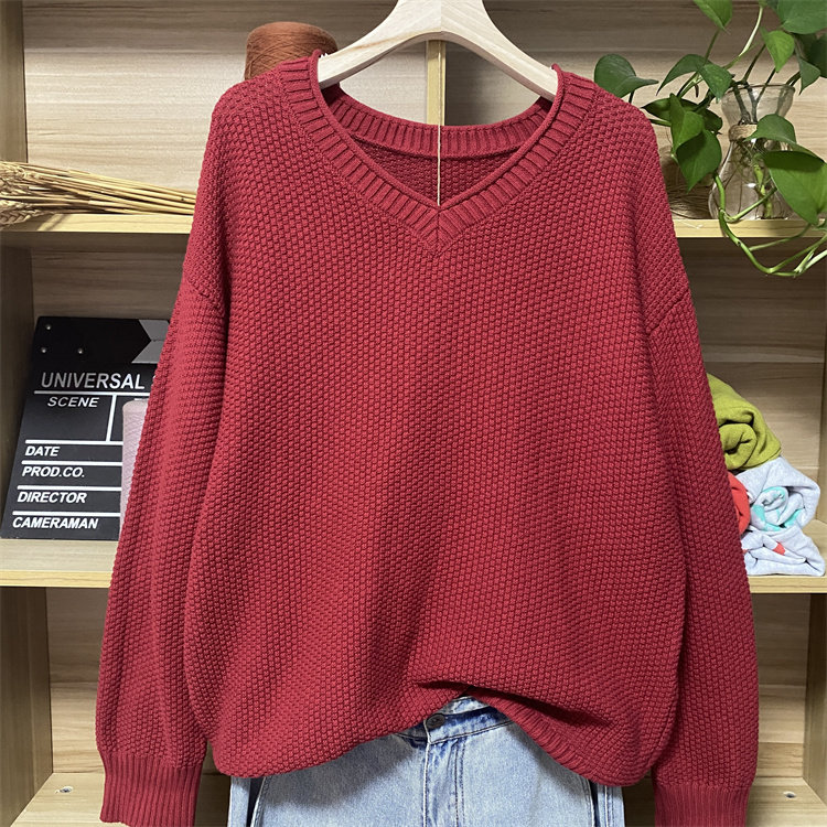 棉针织衫慵懒套头V领短款毛衣女