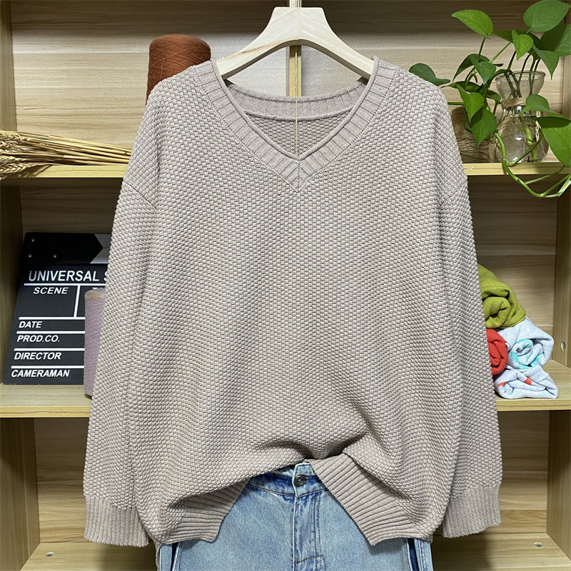 2025秋季V领宽松复古棉针织衫女慵懒百搭减龄短款不起球叠穿毛衣