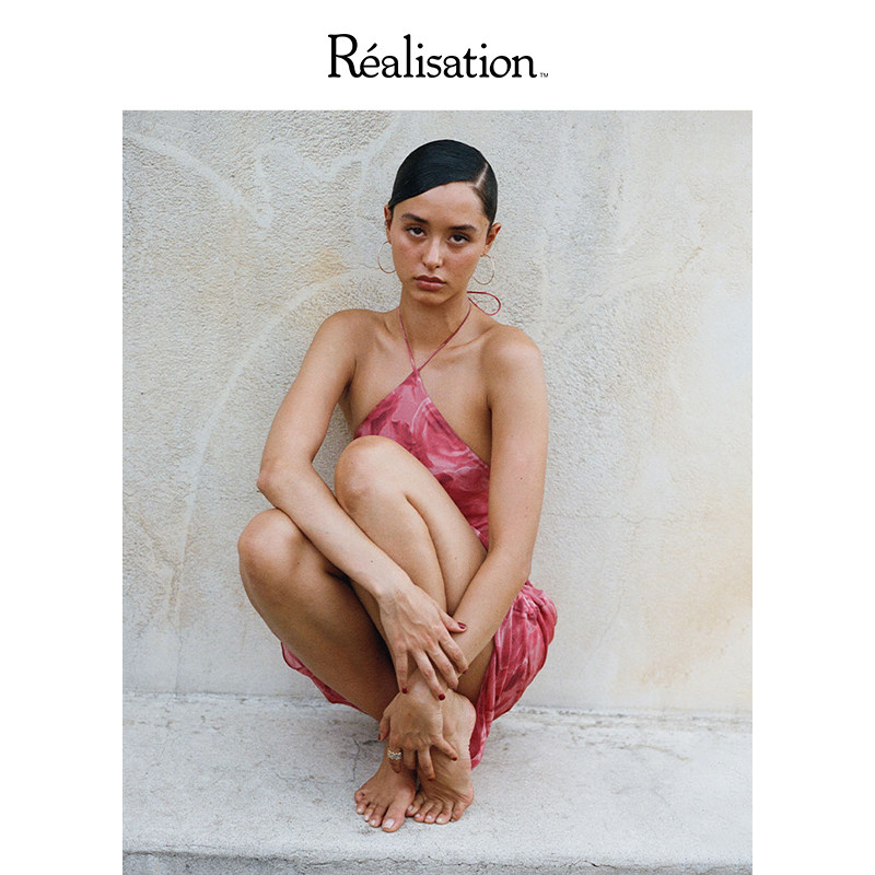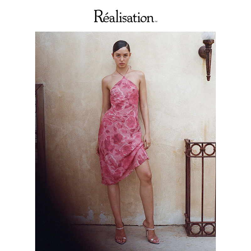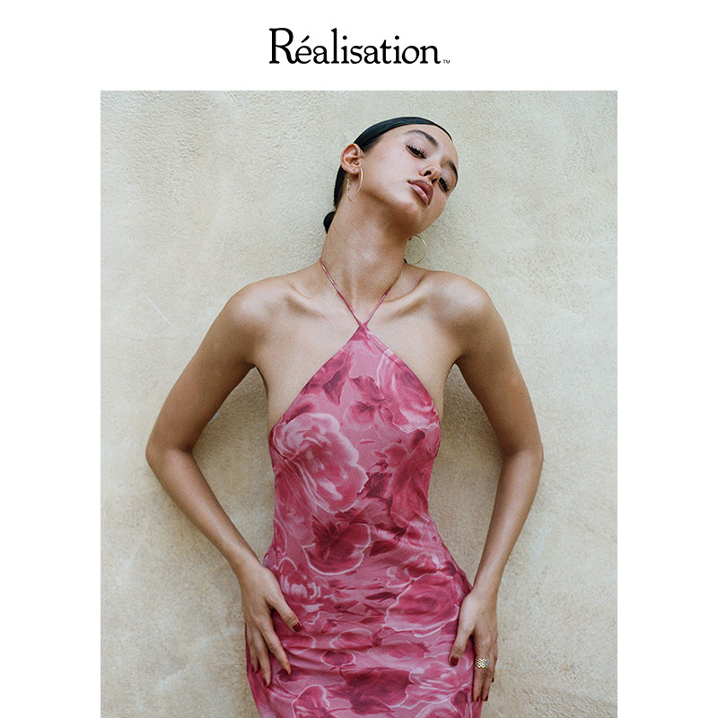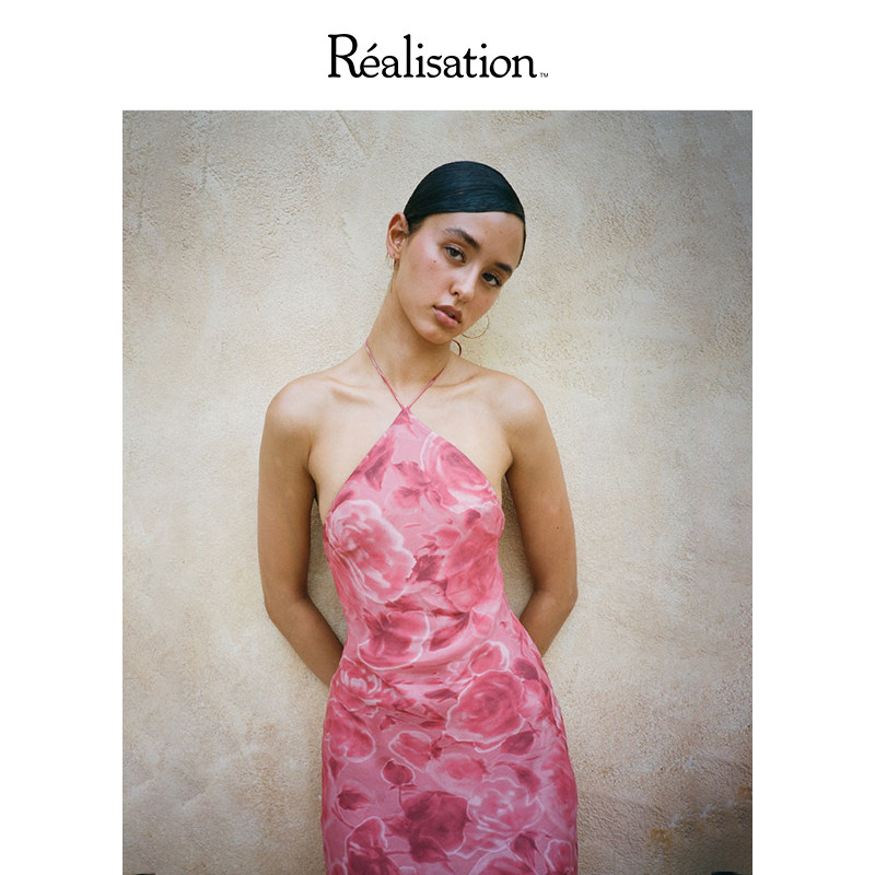 Realisationpar连衣裙春夏粉色挂脖法式真丝吊带长裙The Electra