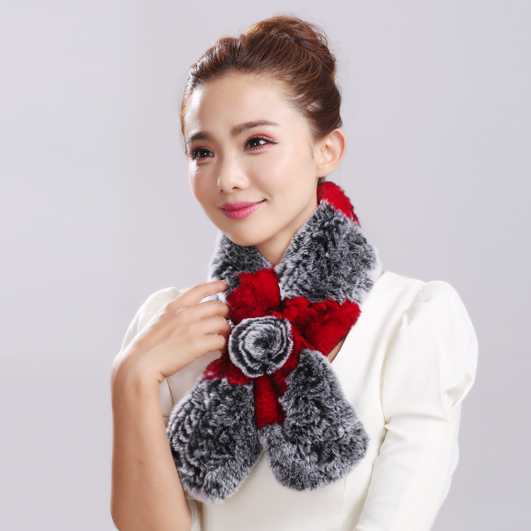 韩版皮草围巾獭兔毛围脖女冬季双色潮玫瑰花加厚兔毛围脖保暖百搭