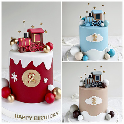 卡通火车头蛋糕装饰摆件红色蓝色灰色小火车软胶玩偶儿童生日插牌