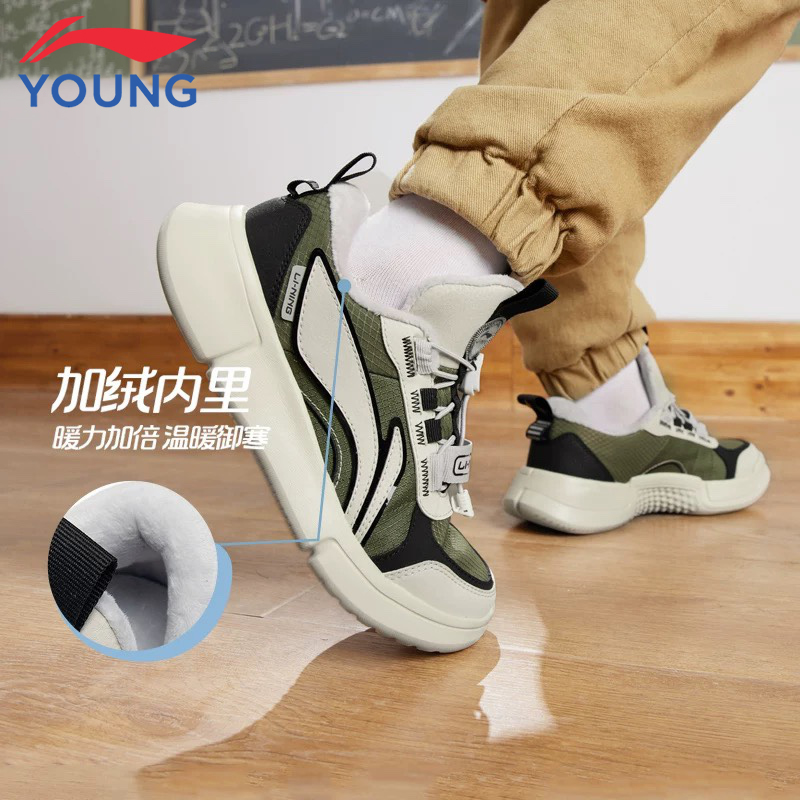 李宁童鞋儿童加绒运动鞋2025秋冬男大童二棉鞋加厚保暖轻便休闲鞋