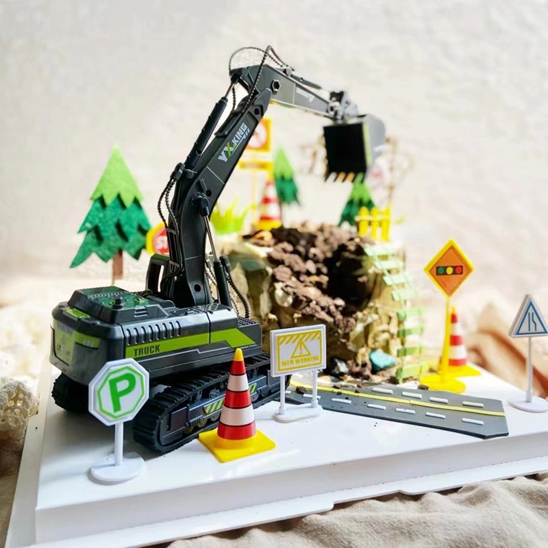 工程车挖机蛋糕装饰摆件挖土机推土机儿童小男孩生日蛋糕插件插牌