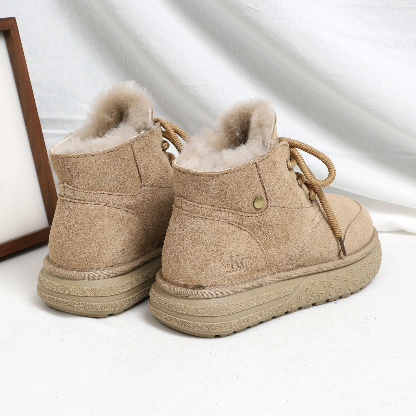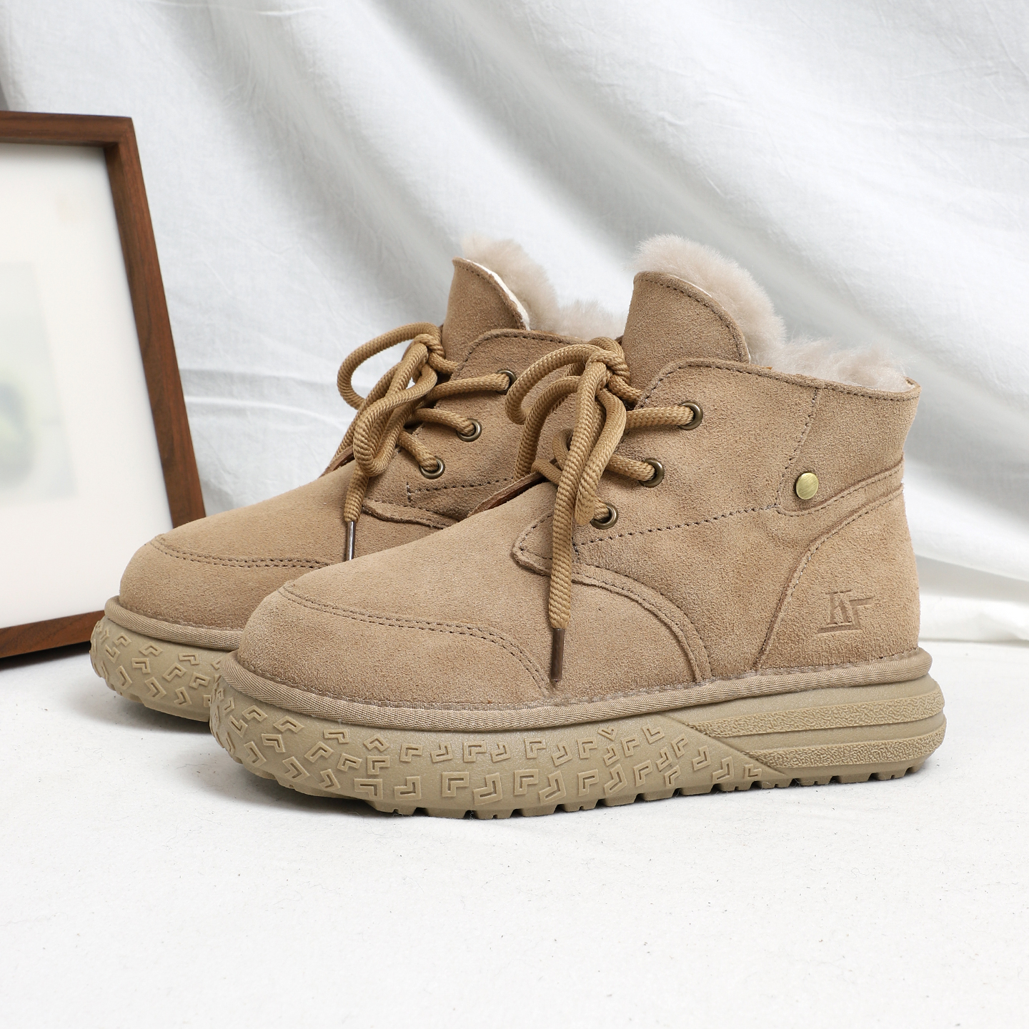 冬季加厚保暖雪地靴女2025新款真皮加绒低帮羊毛短靴防滑勃肯棉鞋