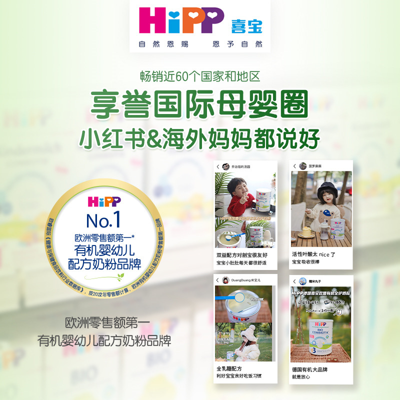 荷兰喜宝HiPP奶粉2段6-12个月宝宝有机益生菌进口婴儿牛奶粉3罐装