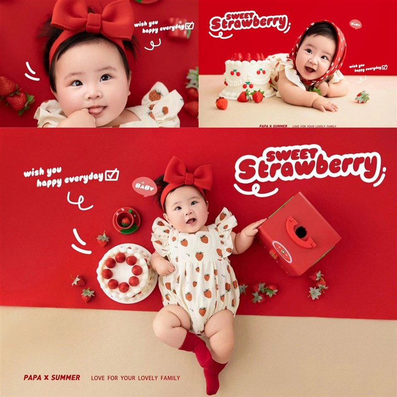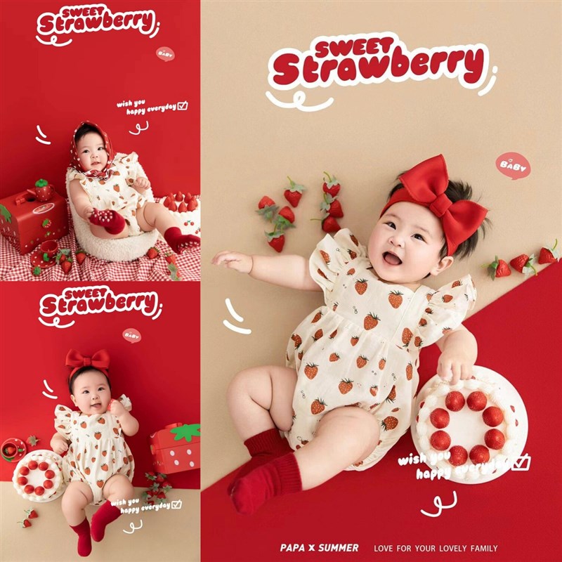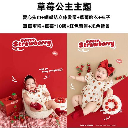 儿童摄影主题服装草莓水果主题宝宝百天照周岁照拍照服装道具