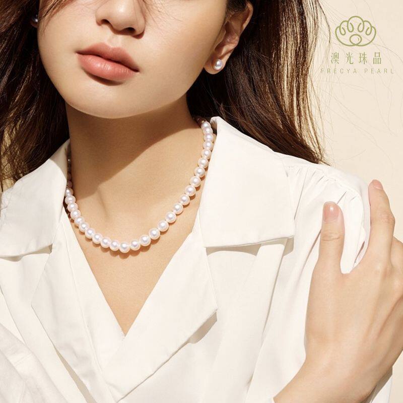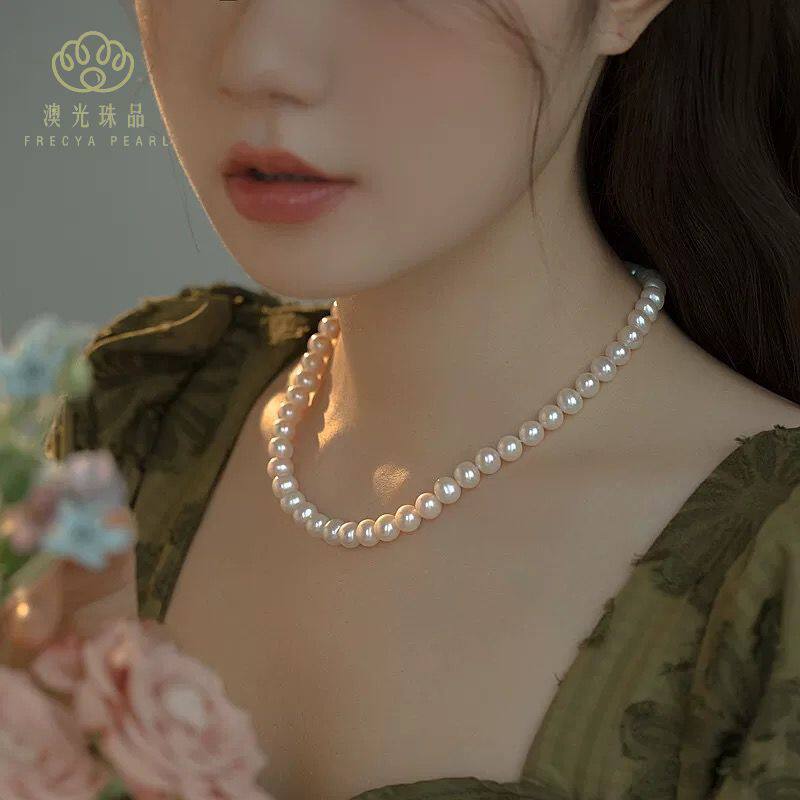 极光水晶澳白珍珠项链纯手工fever款正圆媲美淡水无核海水珍珠