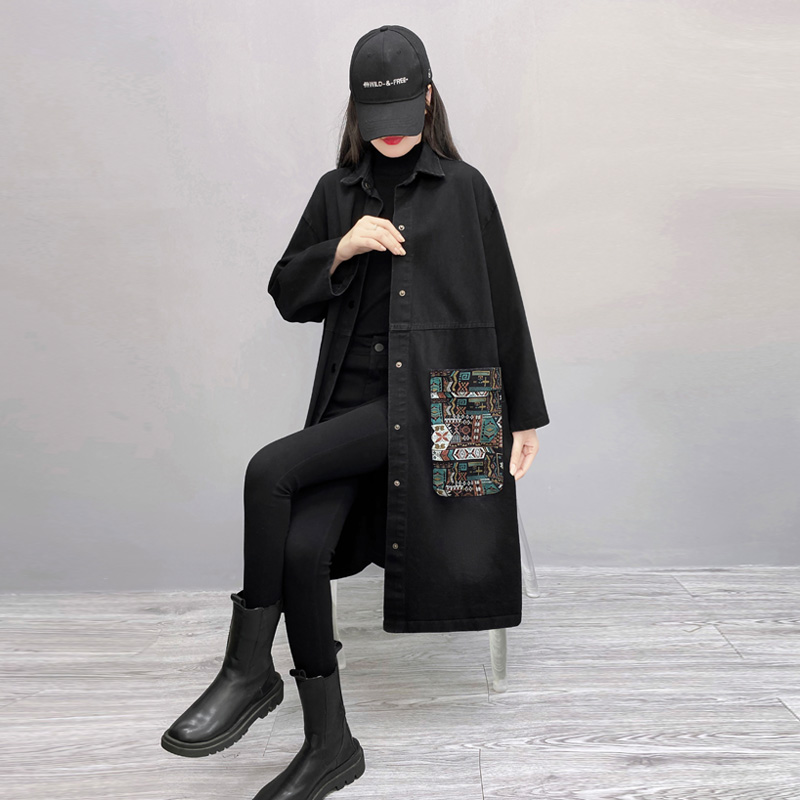 2025加大码中长牛仔外套女新款秋季胖mm百搭宽松休闲风衣牛仔外套