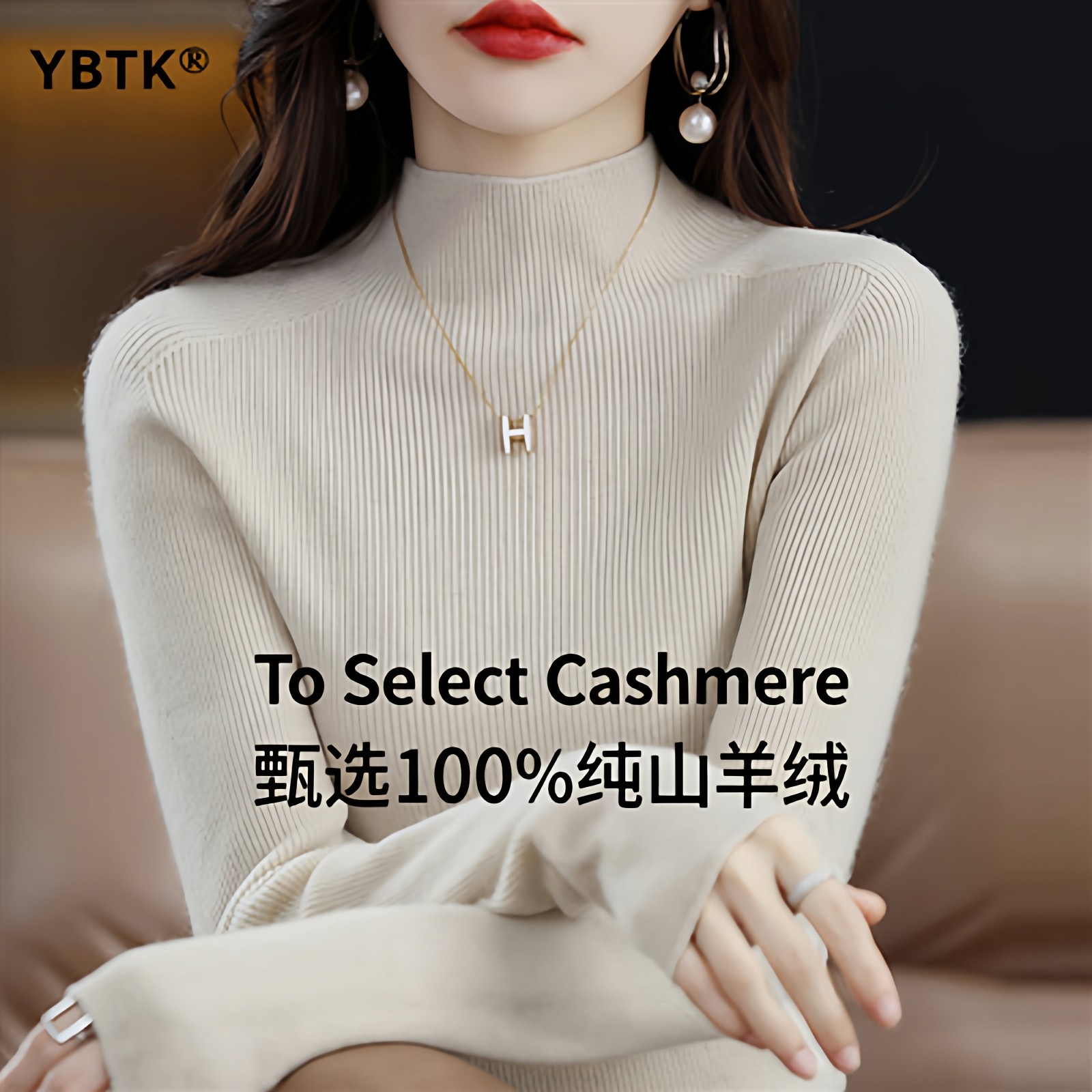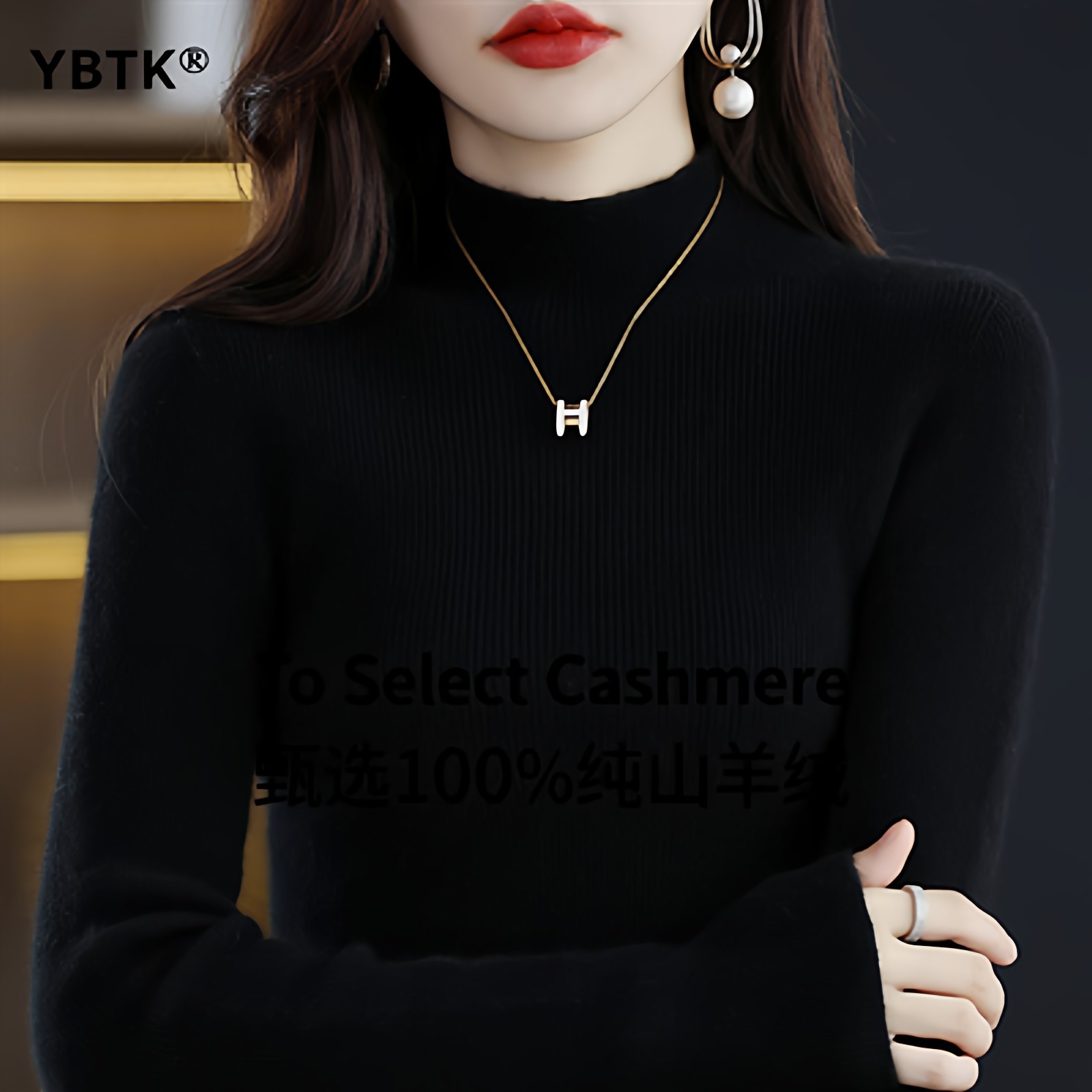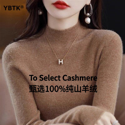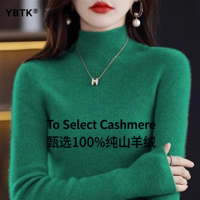 鄂尔多斯市100纯色羊绒衫女士秋冬季款半高领毛衣羊毛针织打底衫