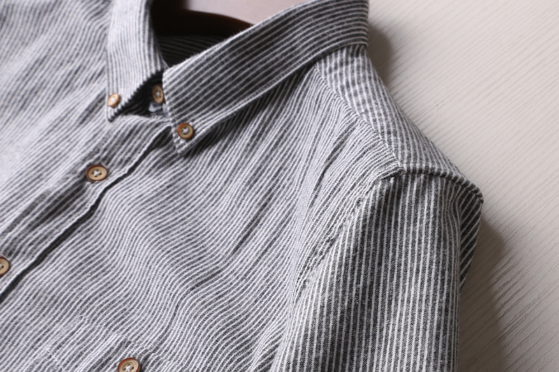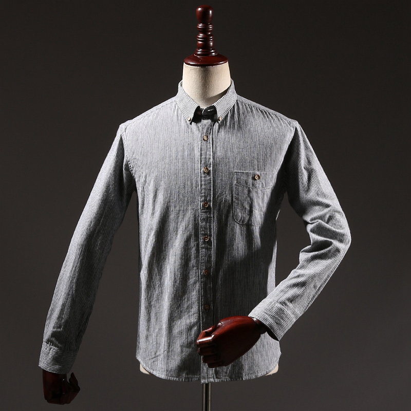 磨毛面料 秋冬男士青年时尚条纹舒适棉质多色可选修身长袖衬衫潮
