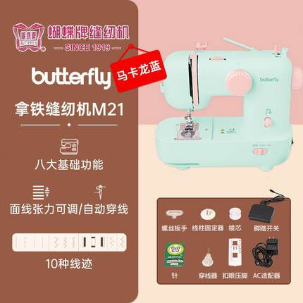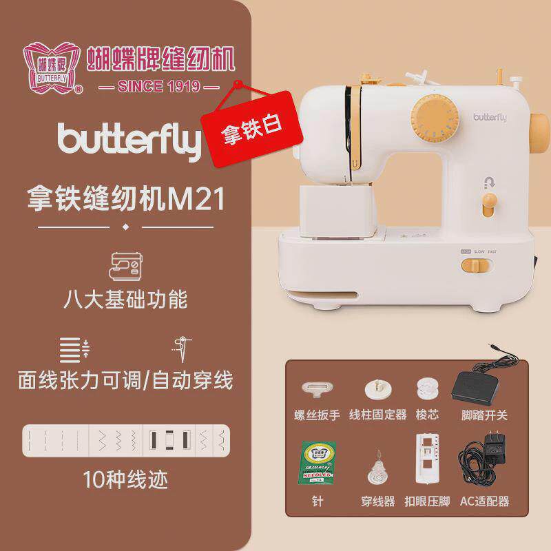 新品蝴蝶牌缝纫机m21迷你多功能小型电动衣车台式家用拿铁缝纫机