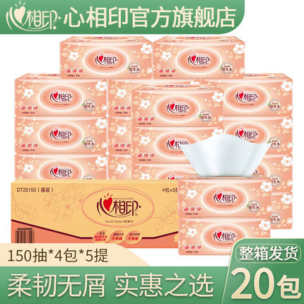 心相印抽纸2层150抽20包5提装软包面巾纸餐巾纸原生木浆双层纸巾