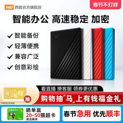 WD西部数据移动硬盘2t正品存储电脑5t手机外置1t大容量机械硬盘