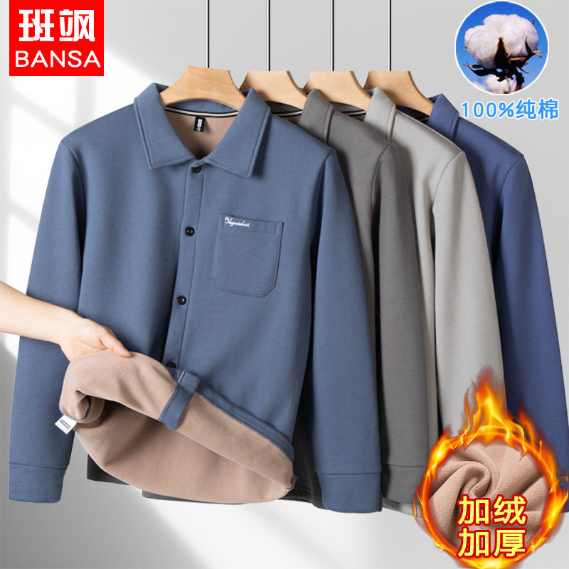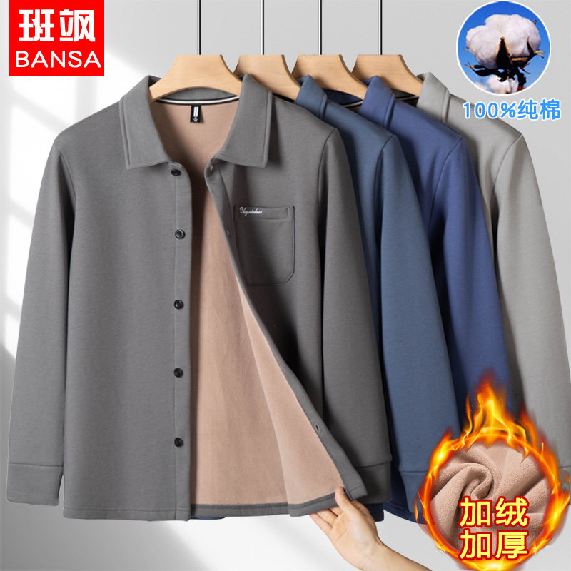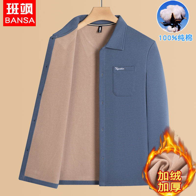 秋冬季保暖内衣纯棉中老年男人加绒加厚外套开衫衬衫爸爸爷爷装