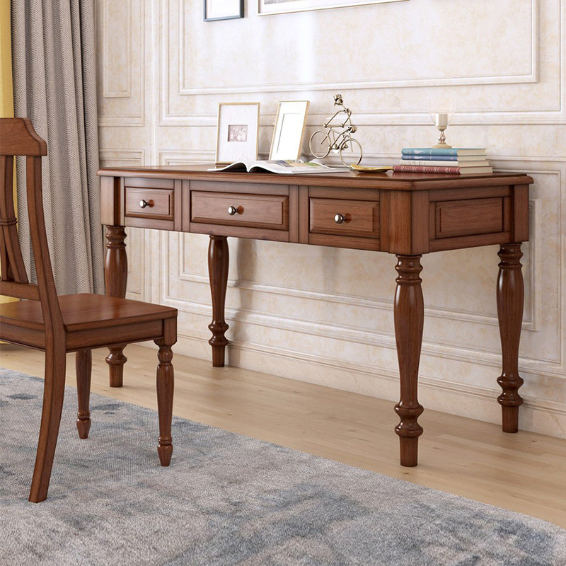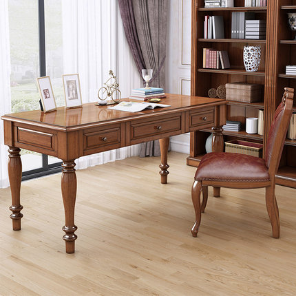 美式乡村全实木书桌原木环保家具写字台书房中式北欧电脑桌办公桌