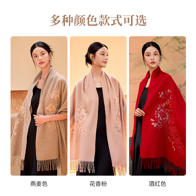 上海故事秋冬新款加厚保暖绵羊毛围巾刺绣空调披肩送妈妈礼物礼盒