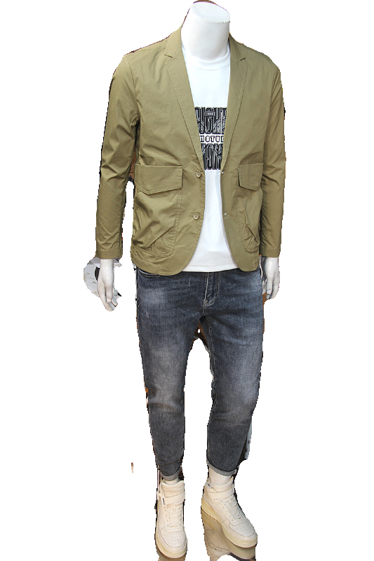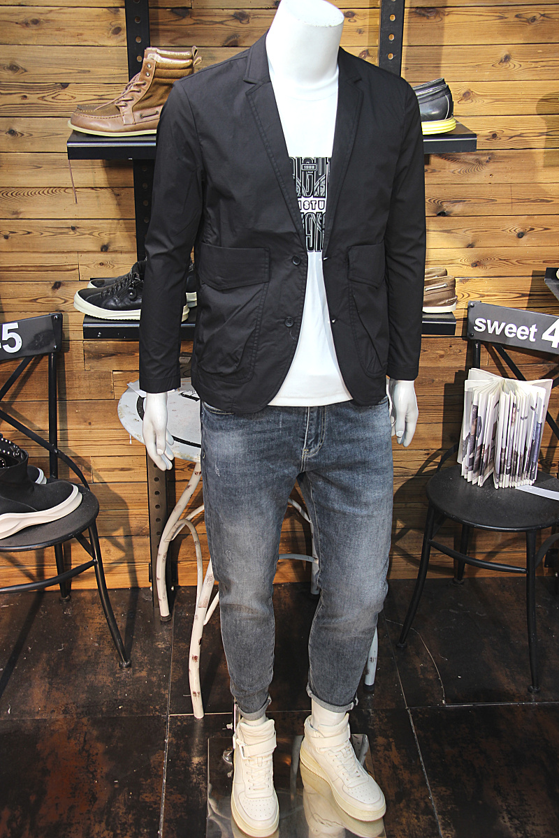 春夏男士小西服外套简约立体口袋时尚修身帅气青年休闲单西夹克