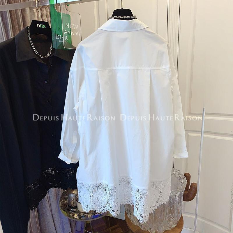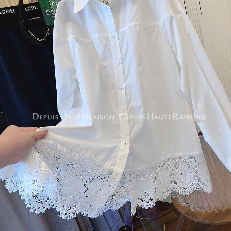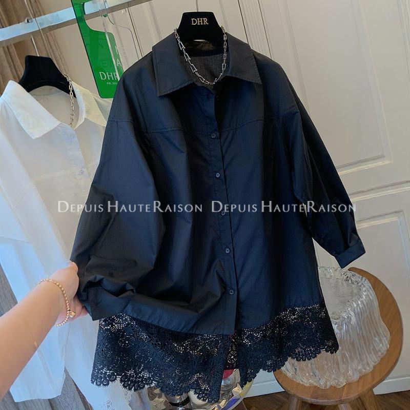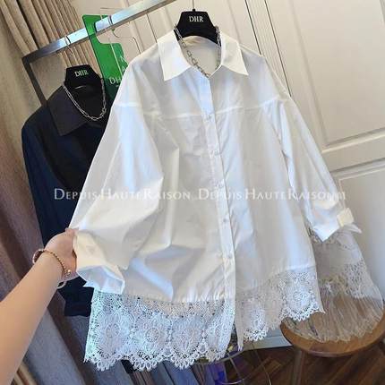 气质名媛春秋季新款长袖衬衫胖妹妹设计感小众蕾丝拼接高级感上衣
