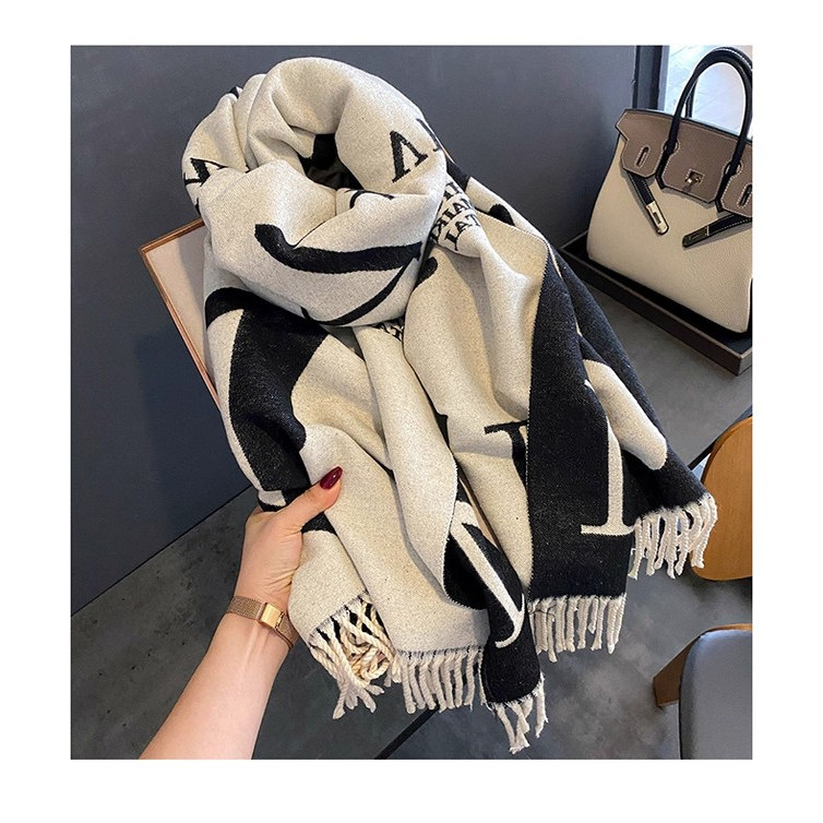 字母印花围巾女冬季2025新款韩版百搭加厚保暖披肩两用高级感围脖