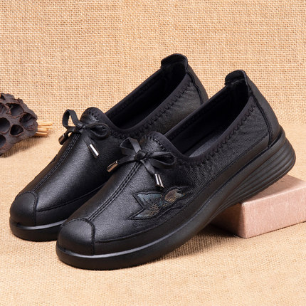 老北京布鞋女新款中老年妈妈鞋春秋皮面老太太奶奶软底防滑老人鞋