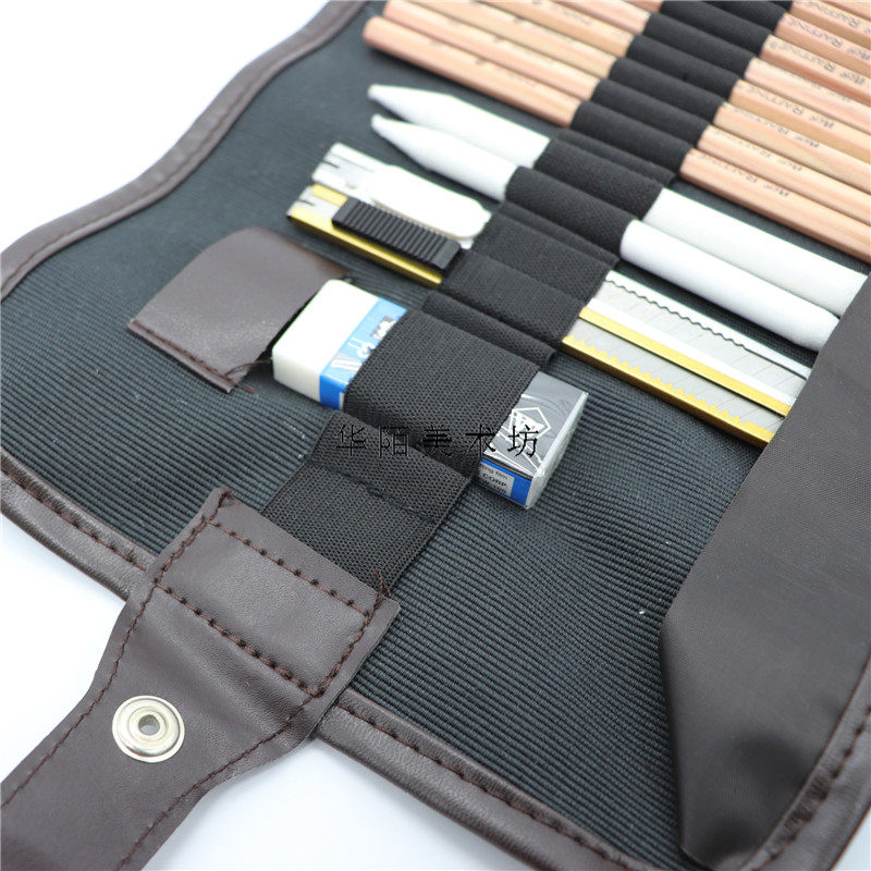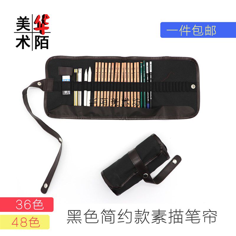 黑色简约素描笔帘 彩铅36色/48支铅笔笔帘彩色铅笔笔袋卷笔帘包邮