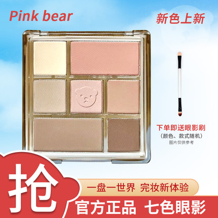 PINKBEAR皮可熊七色眼影盘新品哑光珠光大地色皮克熊奶油小熊联名