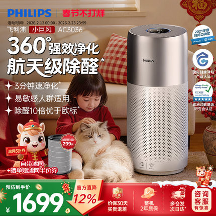 飞利浦空气净化器家用除甲醛消毒雾霾吸二手烟空气净化机AC3036