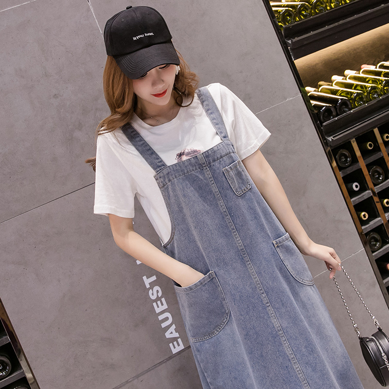200斤b女装大码A字牛仔背带裙显A瘦休闲百搭胖妹妹宽松长款连衣裙