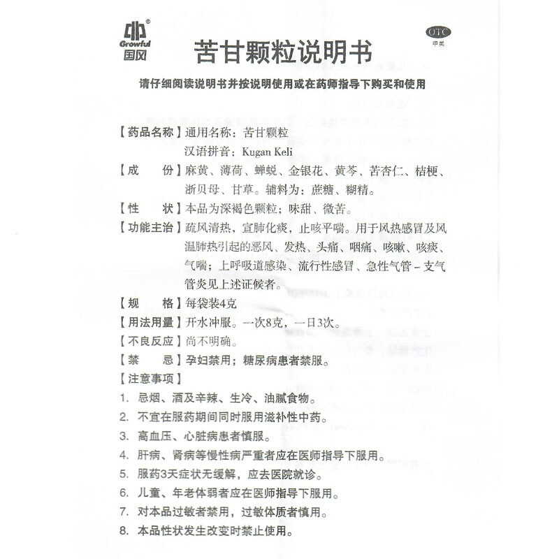 12袋】国风 苦甘颗粒12袋/6袋疏风清热宣肺化痰止咳平喘咳嗽