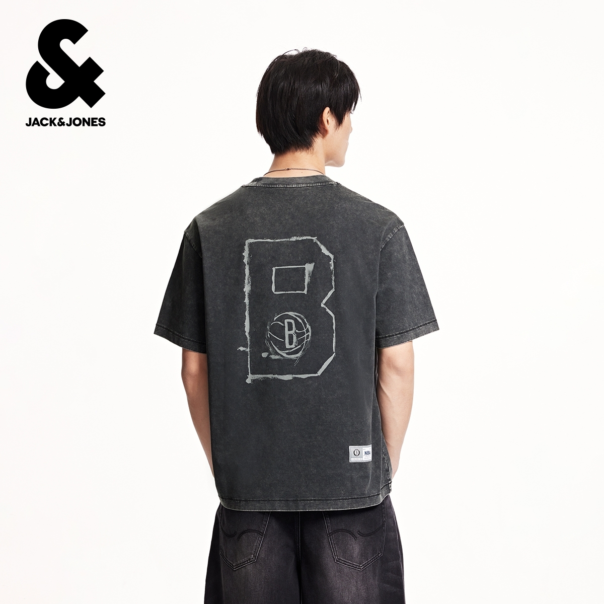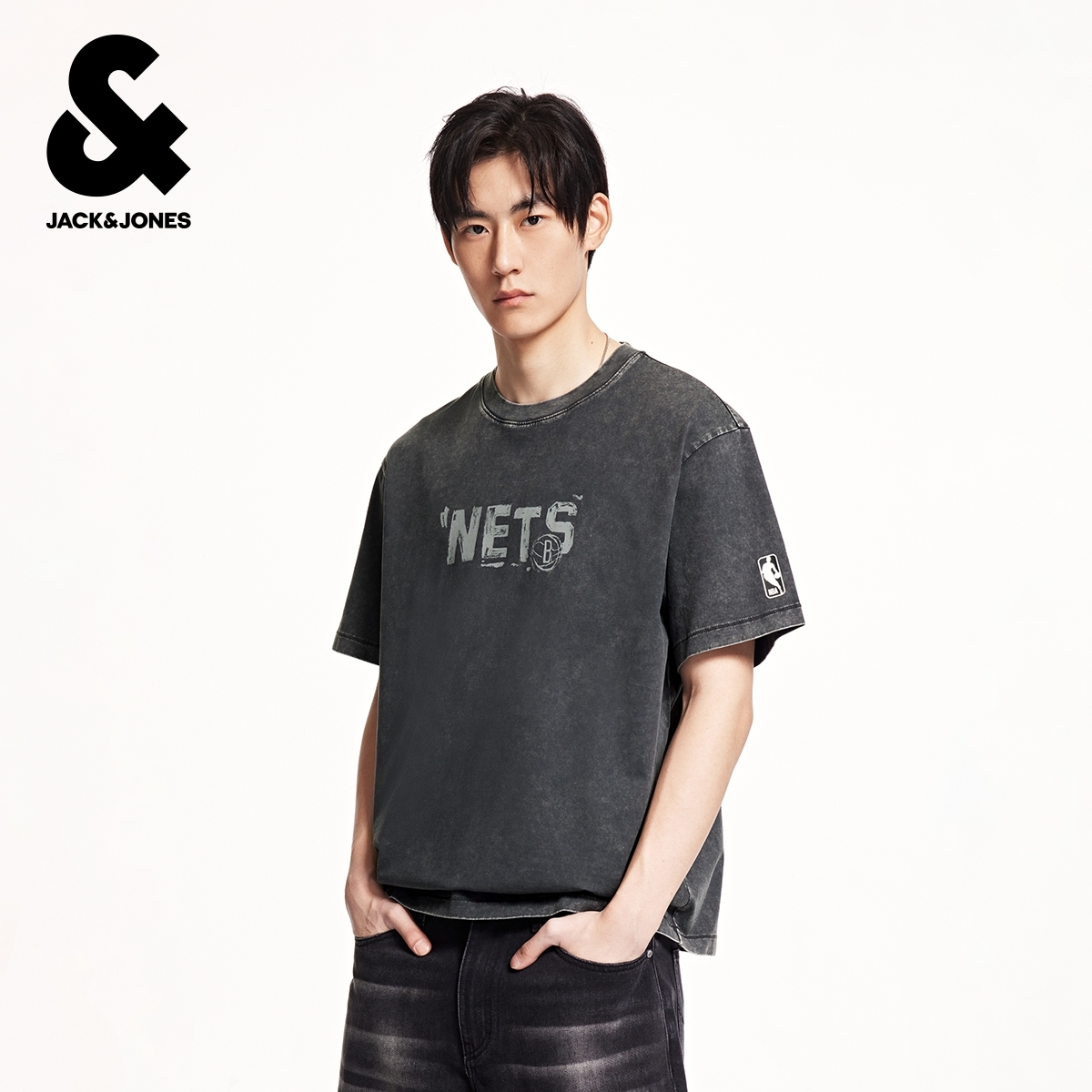 vq区绫致杰克琼斯NBA联名款夏季做旧水洗印花纯棉宽松短袖T恤男装