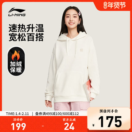 李宁卫衣男女25秋冬新款情侣连帽上衣休闲加绒长袖帽衫宽松运动服